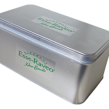Una singola confezione in latta completamente color acciaio, semplice ed elegante come i nostri biscotti.